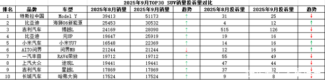 近期,9月SUV销量投诉量对比榜单正式发布,据乘联会与车质网数据显示,当月SUV零售销量达113.1万辆,环比增长11.8%,而有效投诉量为7157起,环比下降5.8%,投诉销量比也出现了明显的环比下降,表明整体口碑呈现出企稳向好态势。