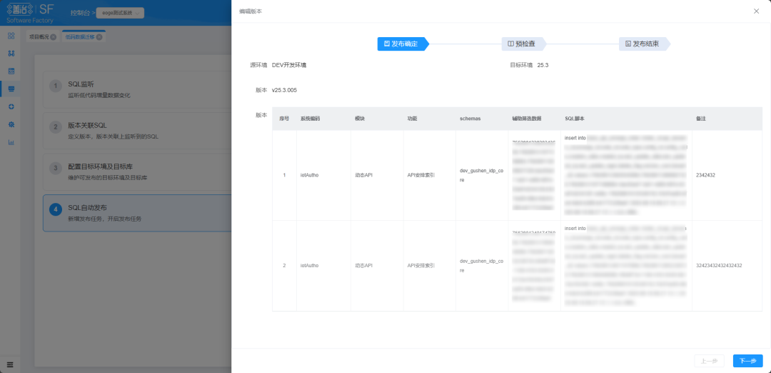 该功能通过自动监听开发环境数据变化,实现增量数据向测试或生产环境的精准同步,全程无需人工干预,避免因数据差异导致的测试结果偏差,又能提升版本发布效率,降低人工操作带来的失误风险,为开发运维全流程的可靠性保驾护航。