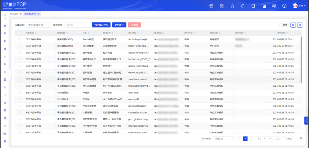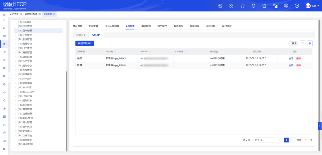 API权限精细化管控:支持“菜单批量绑定接口”(通过菜单权限自动控制接口访问)与“单独授权”(不关联菜单时可定向给人员/角色开接口权限),既减少手动配置工作量,又规避接口误暴露的安全风险,实现权限管控的灵活性与安全性平衡。