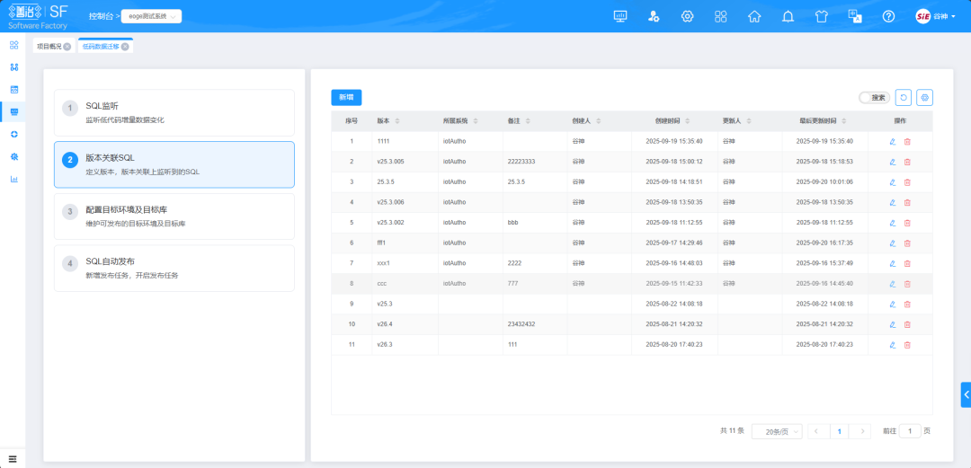 善治SF平台围绕开发运维全流程的“数据同步”核心需求,新增低代码数据跨环境迁移功能,以技术升级保障数据流转的及时性与准确性。